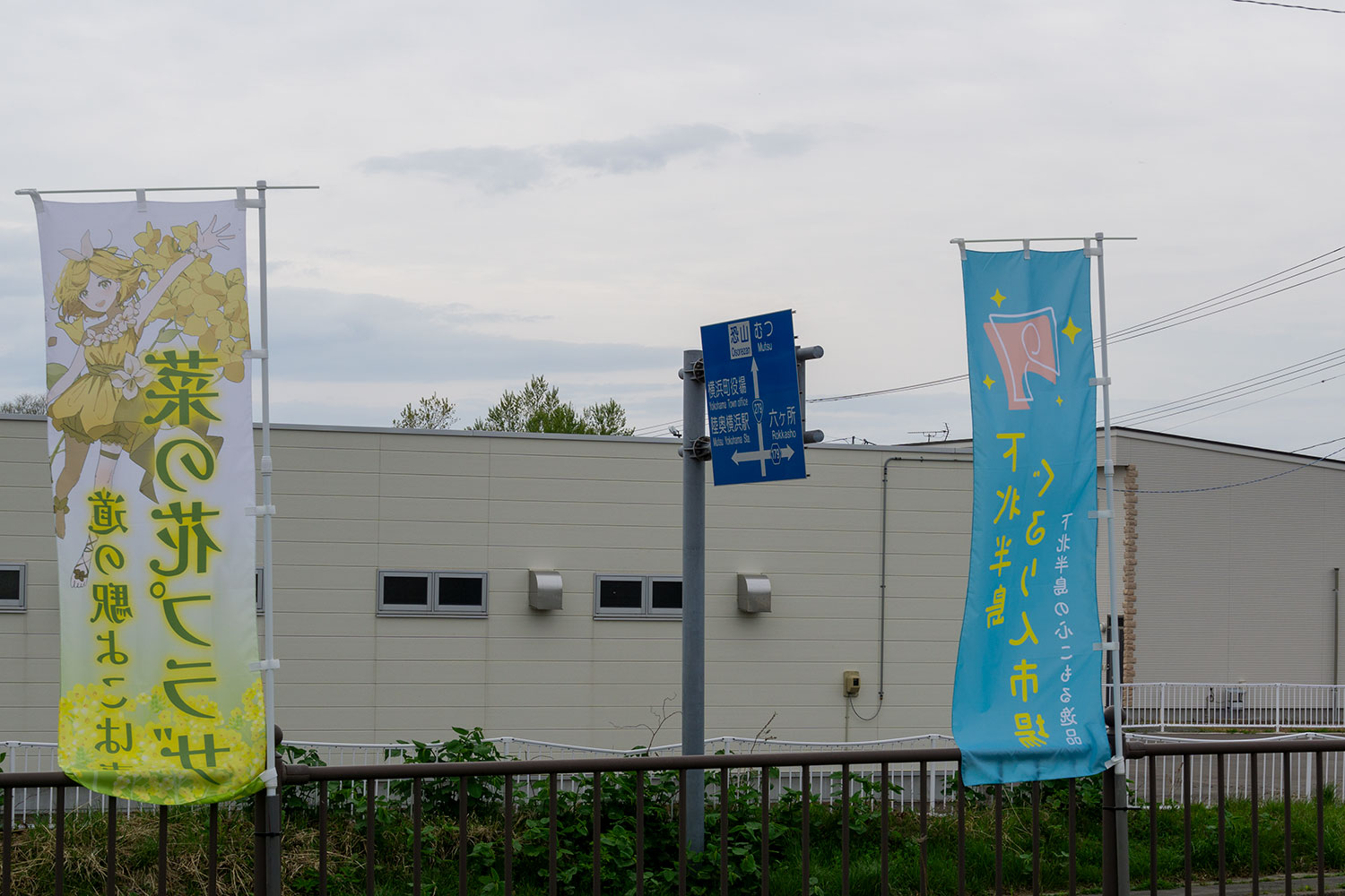 霊場恐山に1時間ほど滞在し、出発後は途中までは来た道を戻るように進みます。ちょっとの時間と距離ですが、寄り道のため国道338号線との交差点で川内方面へとハンドルを切ってからまもなく、目的の大湊駅に到着です。大湊駅は前日の津軽線の三厩駅同様、半島の終着駅。訪れた時にはちょうど、リゾートあすなろが停車していました。また、列車以外にも、駅前からは釜臥山にある自衛隊のガメラレーダーを見ることができます。