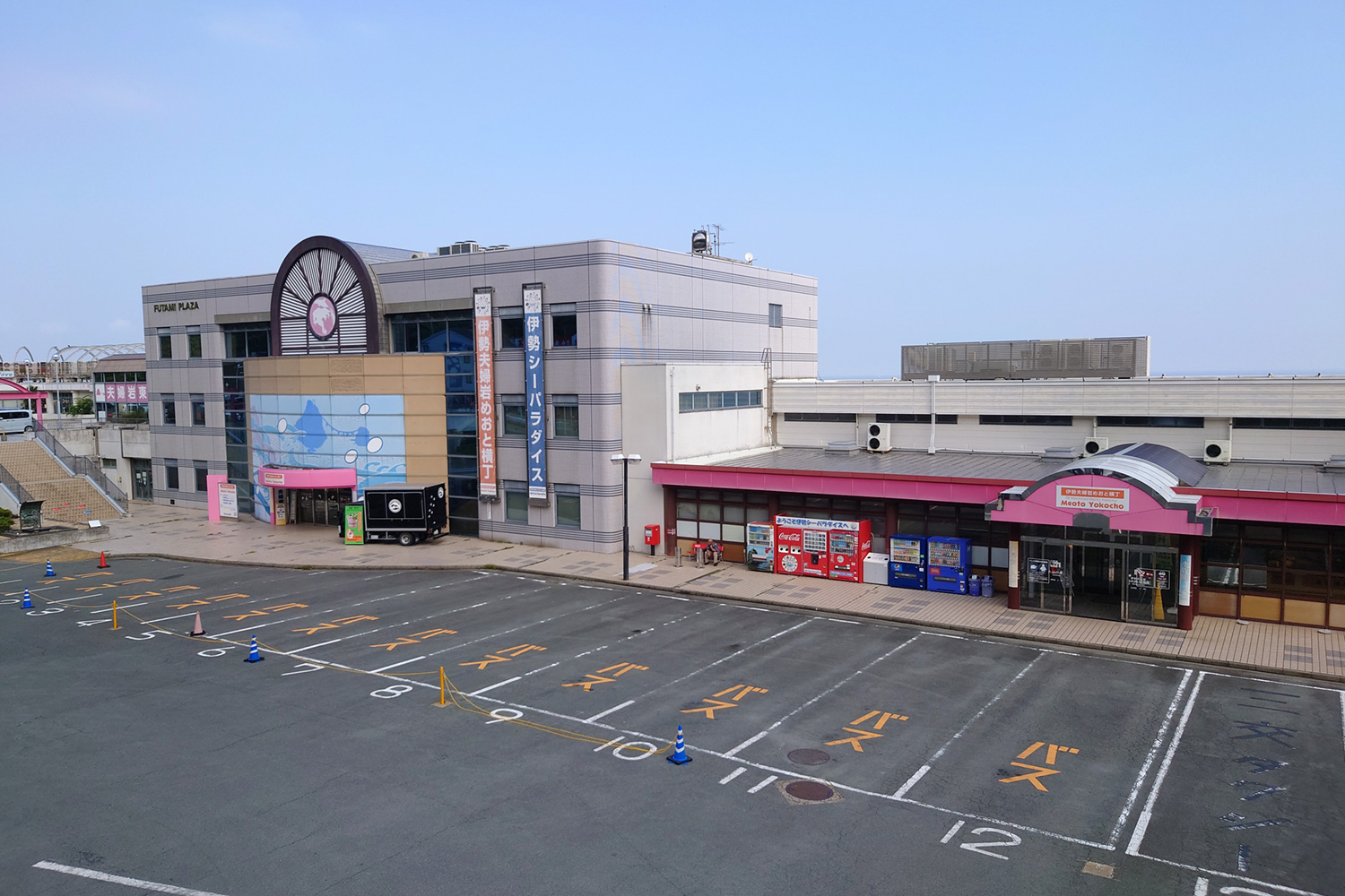 国道167号線、近鉄志摩線と並走する区間は若干の峠道。県道61号線穴川付近で道の駅の案内があったので、灯台の前に少し寄り道。新し目のバイパス道(国道167号線)を少し進んだ先、小高い丘の上にあったのが道の駅 伊勢志摩です。駅舎?の隣にはサンアール磯部という場外馬券売り場が併設された珍しい道の駅ですが、真夏の陽気の中では空調の効いたオアシス。ショッピングなどしながら涼を取りました。
